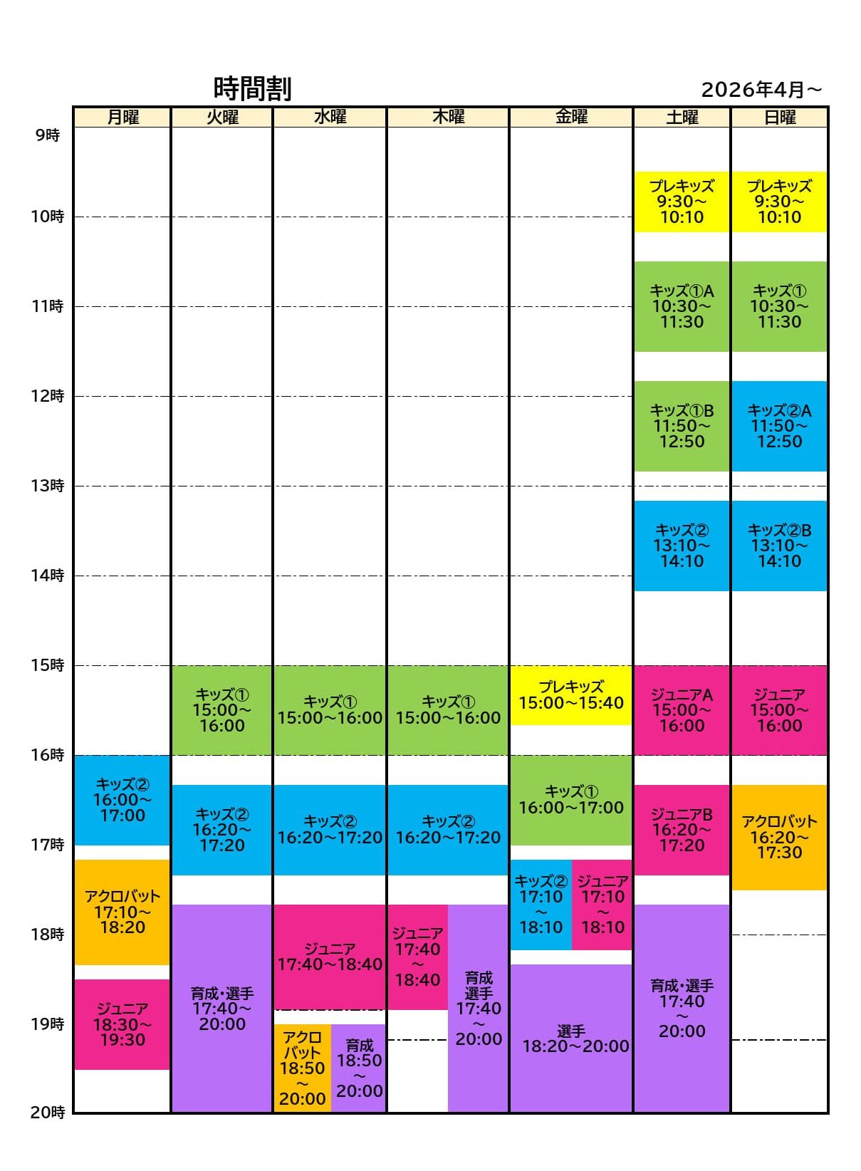 2026年3月より時間割の変更をさせていただきます。
